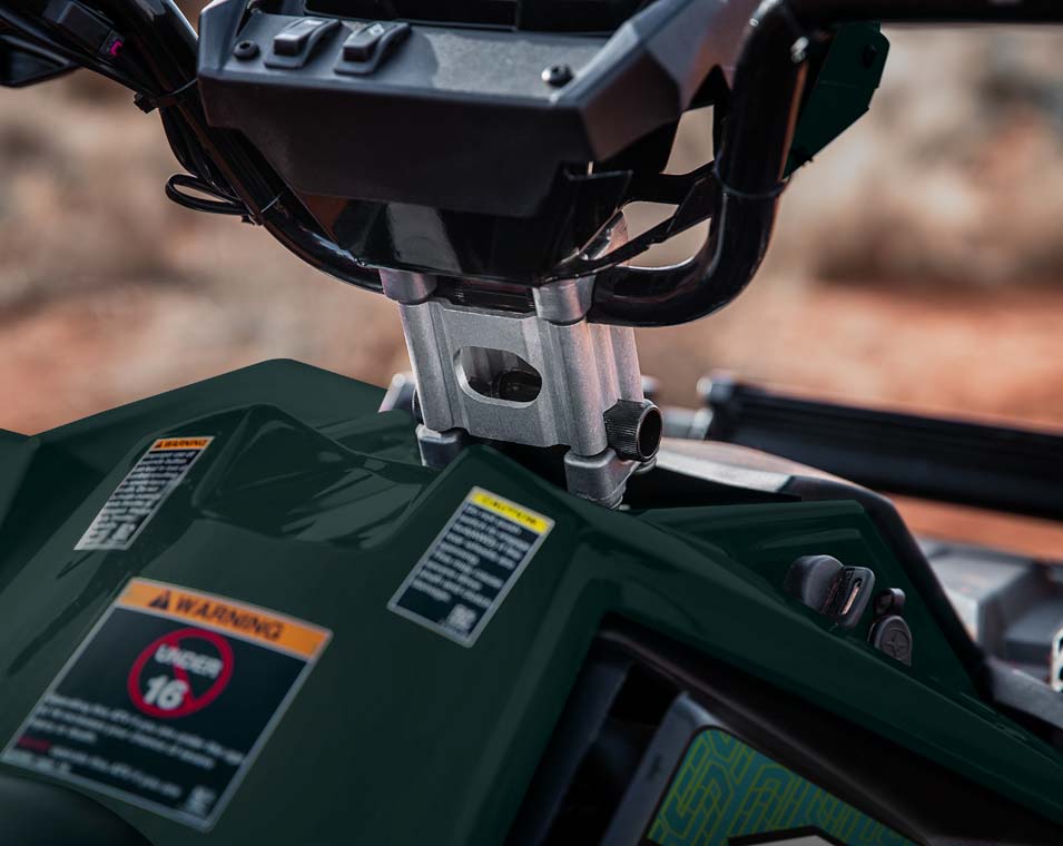 2 modes de conduite : Performance/Standard, Prise d'alimentation 12 volts, pré-câblée pour chauffe-mains et chauffe-pouces, port de chargement de batterie indépendant, Pare-chocs avant, plastiques peints, ressorts peints, élargisseurs d'ailes